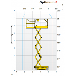 8 méter munkamagasságú elektromos ollós emelő. Beltéri használatra, szilárd, vízszintes talajra ajánlott.