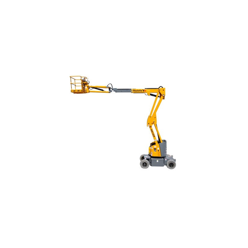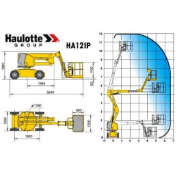 12 méter munkamagasságú beltéri kosaras emelő. Elektromos meghajtású, fehér kerekes emelőgép, beltéri munkákra alkalmas.