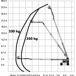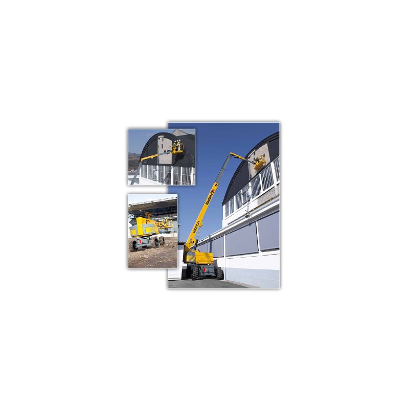28 méter munkamagasságú kültéri teleszkópos kosaras emelő. Diesel meghajtású emelőgép, kültéri munkákra alkalmas. Összkerék meghajtású, így nehéz terepen is könnyedén mozog.